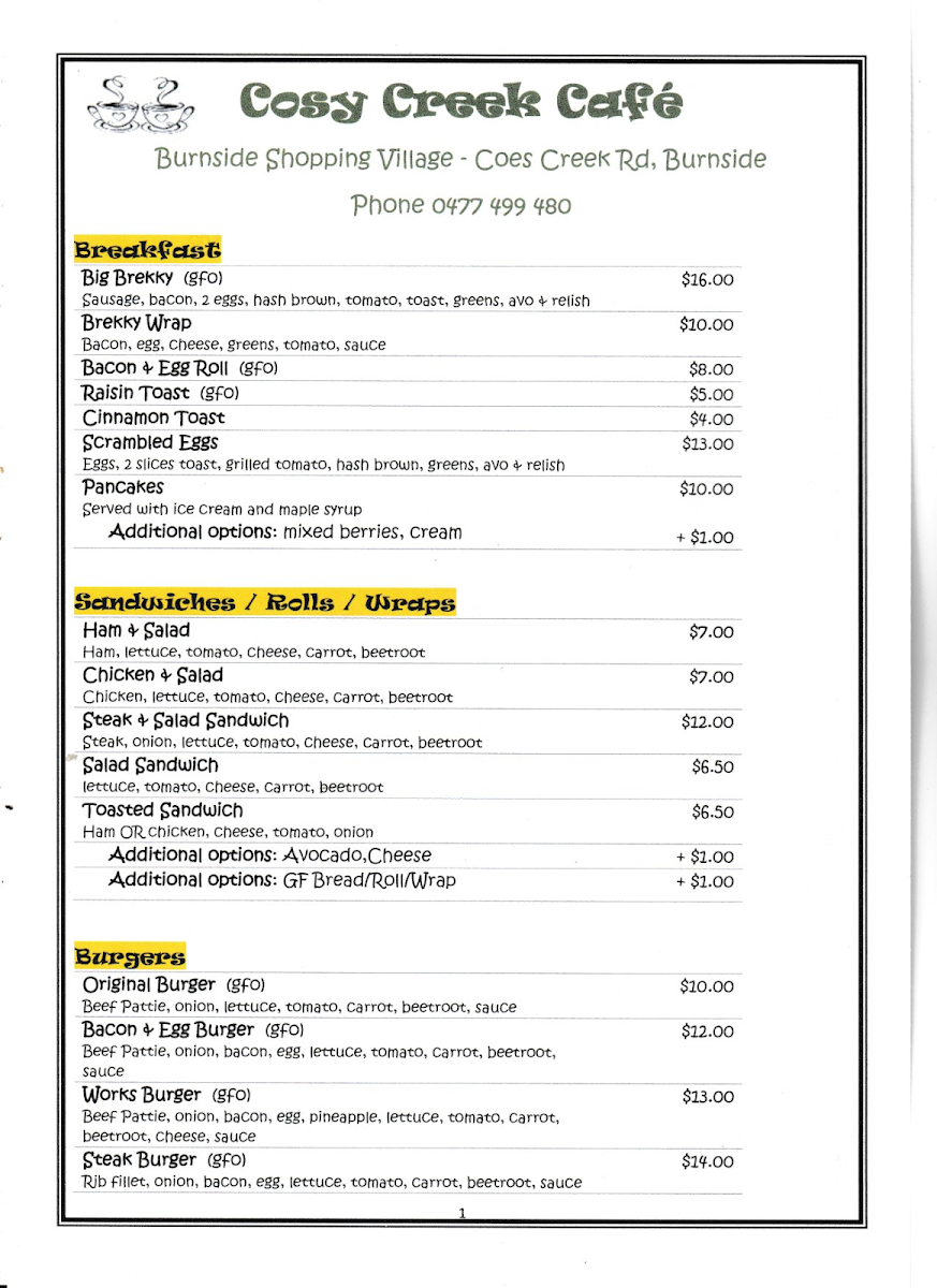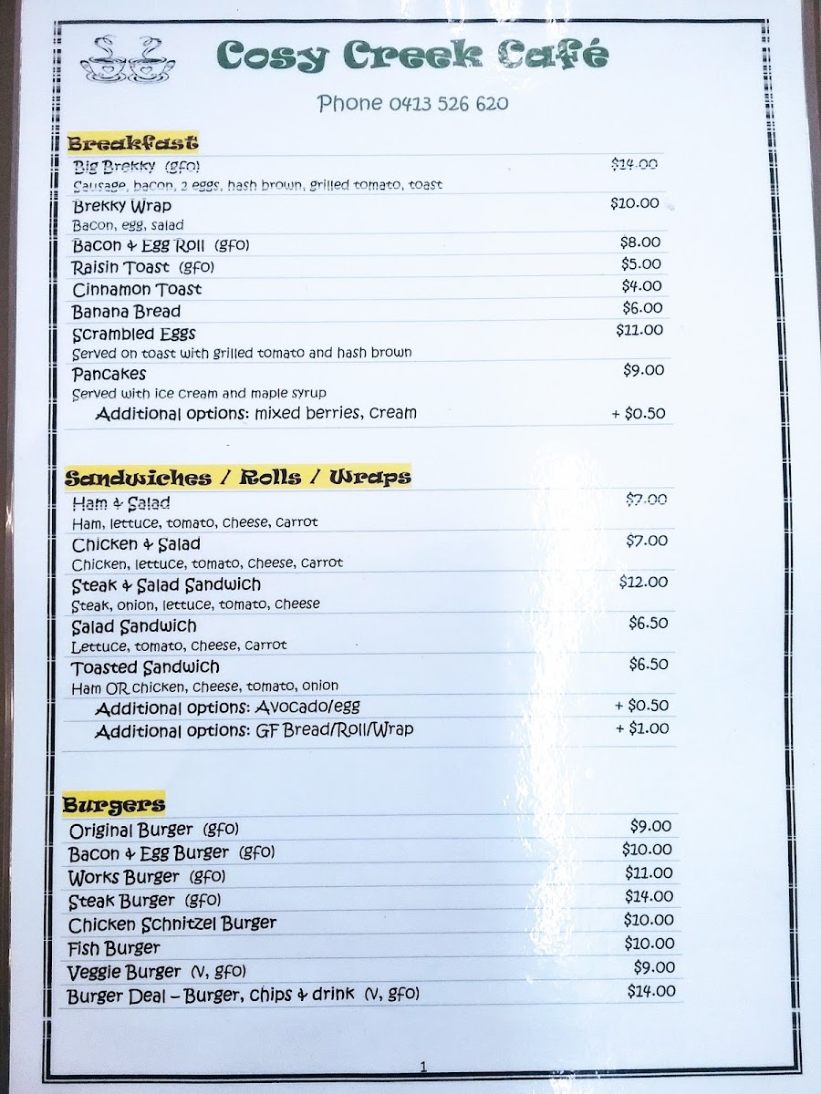 Expect a welcoming atmosphere, friendly service, and reasonable prices, as noted by satisfied customers. Whether you're here for a relaxing breakfast or a hearty lunch, Cosy Creek Cafe is a must-visit culinary gem.